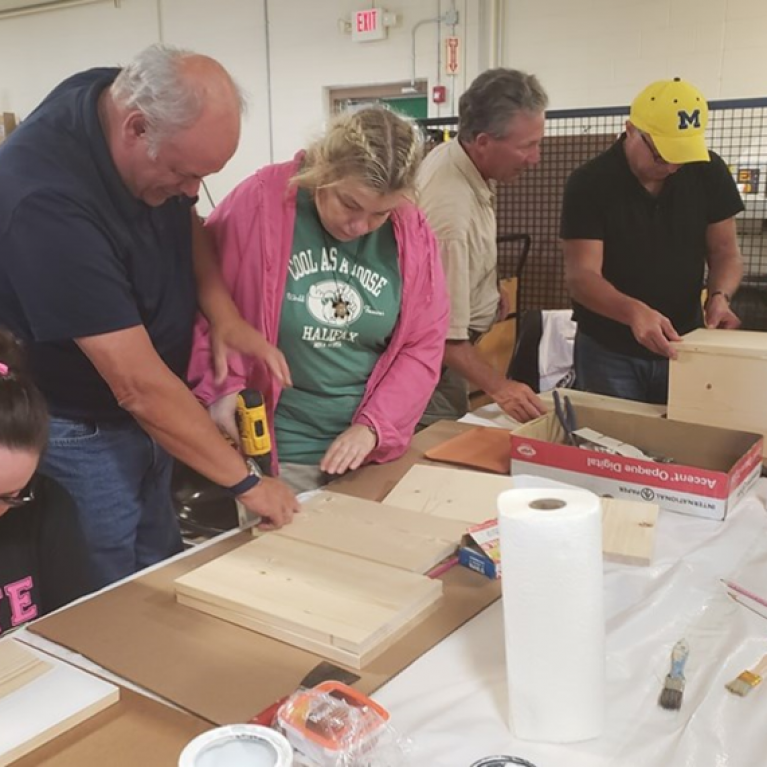 A little learning and a little giving!. Rockline WI Operation Core Leadership team spent time together building skills and community at the Team Leadership Center in Sturgeon Bay this past week.